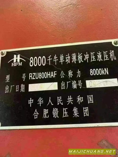 合肥锻压800吨压力机滑块行程:1300mm开口高度:2000mm. |